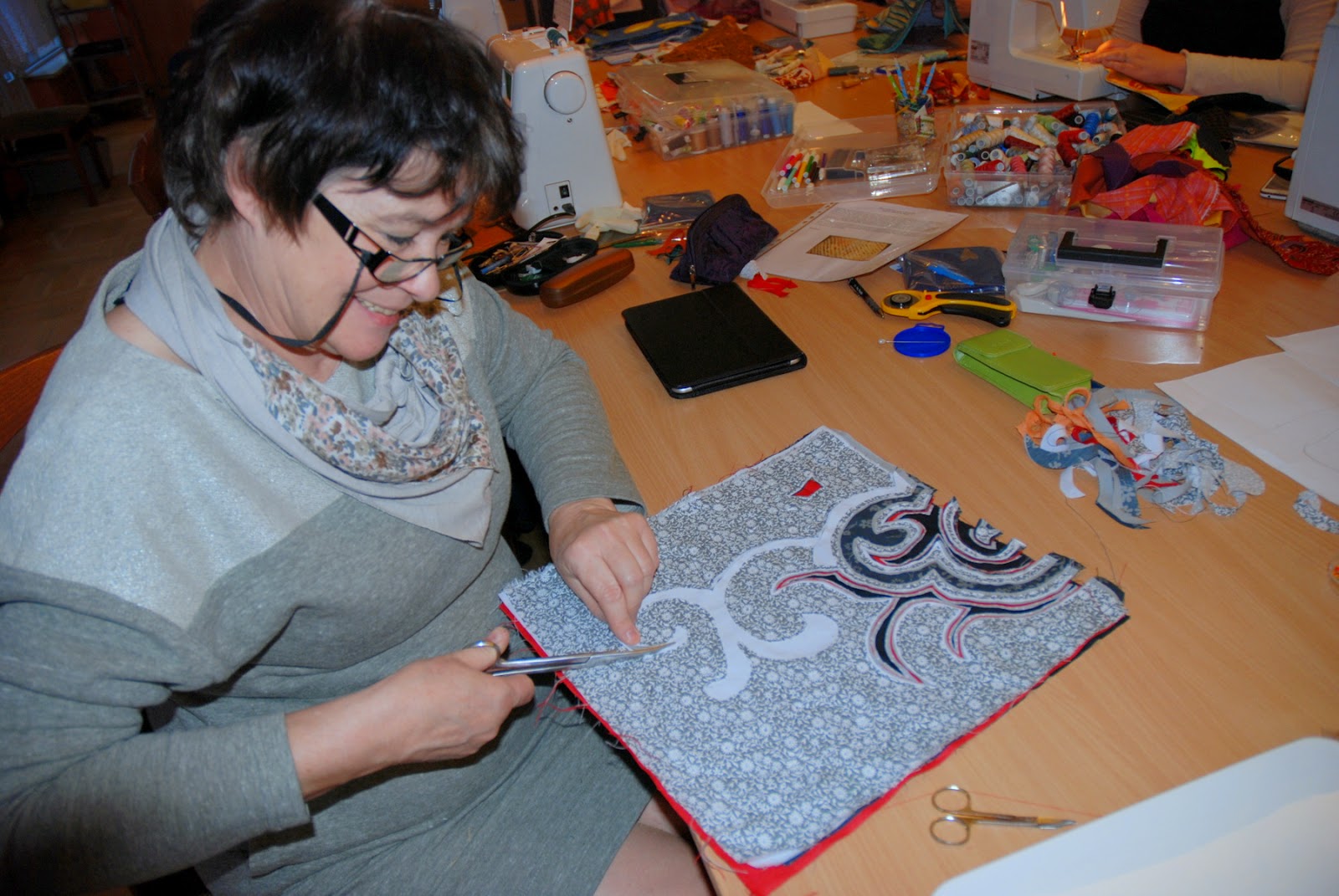 Minął już tydzień od kolejnych warsztatów w Toruniu. Przyjechało 8 pań z różnych końców Polski, ciekawych z bliska poznać technikę Stitch & Slash. Wszystkie panie stwierdziły, że technika jest bardzo ciekawa i inspirująca choć bardzo czasochłonna ale efekty końcowe wynagradzają wszystko. Powstawały rysunki i plany, burzliwe dobieranie tkanin a potem działo się.....
